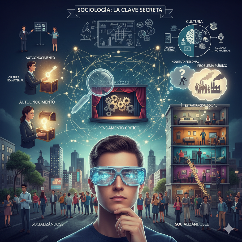 En el mundo real, la sociología sirve para resolver casos y entender grandes enigmas sociales, como por qué la gente vota, qué hay detrás de un conflicto o cómo cambia la idea de familia, utilizando datos, encuestas y entrevistas. Pensar como un sociólogo es un «superpoder» con amplias salidas laborales, incluyendo trabajar en empresas (entendiendo clientes), recursos humanos, asesorando a gobiernos para crear leyes más justas, o en criminología. Al final, la sociología es como ponerse unas gafas especiales que permiten ver las fuerzas invisibles que dan forma a las decisiones y relaciones.